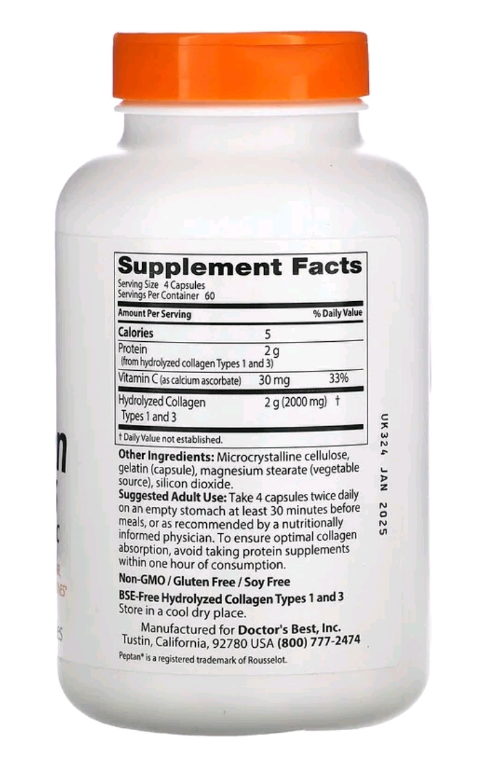 Doctor’s Best Collagen Types 1 & 3 — преміальний колагеновий комплекс для молодості, сили та відновлення організму